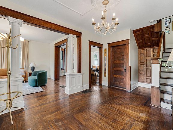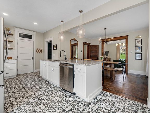 Step up to this delightful Victorian style home nestled in Lakeside Park, right in the vibrant ’05 neighborhood! The inviting covered front porch sets the tone as you enter the spacious foyer, greeted by stunning hardwood floors & original wood accents that beautifully preserve the home's historic charm. Recently restored to highlight its timeless character, this home offers multiple living areas on the main floor, perfect for relaxing or entertaining! The chef’s kitchen features tiled flooring, newer cabinetry, stainless steel appliances, granite countertops, floating shelves, & a nice sized pantry. A stunning full bath on the main level showcases a clawfoot tub & chandelier overhead, adding a touch of vintage elegance. Upstairs, you'll find three generously sized bedrooms with ample closet space, along with the convenience of an upstairs laundry area! The second full bath boasts an exposed brick accent wall, tiled floors, a ceramic walk-in shower, & a vanity with quartz countertops. Enjoy outdoor living on the massive deck, which is perfect for gatherings, barbecues, or relax by the fire, all within the fenced-in backyard. The oversized one-car garage provides additional space for vehicles, toys, & yard equipment. This fully updated home combines historic charm with modern amenities & is ideally located just minutes from parks, trails, & popular downtown destinations. Don't miss the opportunity to make this beautiful Lakeside Park residence yours!