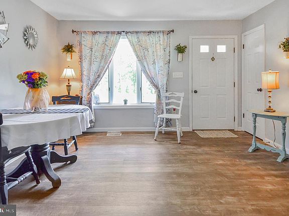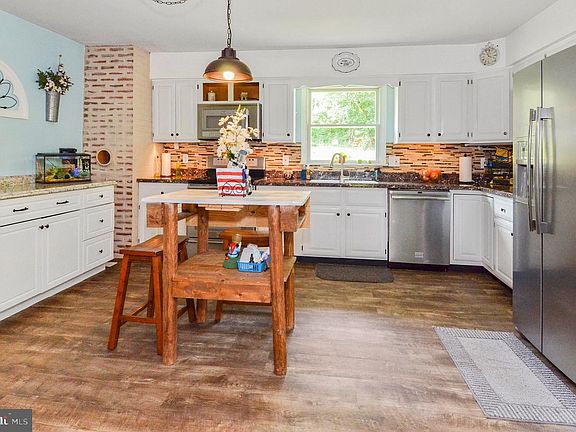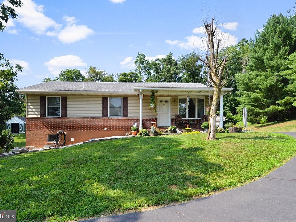 Don't miss this meticulously maintained rancher on 2.8 secluded acres. Plenty of room to stretch out. Sit on the front porch and sip your favorite beverage while taking in the view of the rolling hills. Spacious updated kitchen offers stainless steel appliances, backsplash, and a side bar. Arched doorway into the LR adds so much character and charm. Primary bedroom with half bath. New laminated flooring on main level. Finished walk out level basement has family room w/cozy pellet stove, huge pantry/ storage room, full bath, and an additional bedroom/den. The separate laundry room has a new sink and front loading washer/ dryer. Other updates include new siding with wrap insulation, windows, and hot water heater. 3 Sheds, fire pit area, circular driveway, and lovely landscaping complete this pristine property. Shared private driveway leads to home.