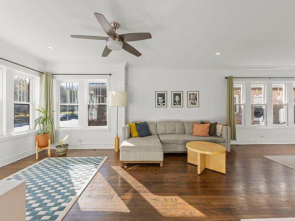 Prepare to fall in love with this artfully updated brick bungalow-the perfect blend of classic charm and modern style. Warmth and livability shine throughout thanks to tall ceilings, hardwood floors, and incredible natural light pouring through the home's large windows. Thoughtful details like 9' ceilings, crown molding, and 6" trim pair seamlessly with the beautifully updated kitchen and baths, carefully selected light fixtures, and uplifting design touches. The charming entryway opens into bright, open-concept living and dining rooms that feel both welcoming and spacious. The stunning kitchen features custom cabinetry, beautiful quartz countertops, stainless steel appliances, and space for a small table or workspace. Two generous main-floor bedrooms with ample closet space share a beautifully updated full bath. The upstairs primary suite is a true retreat-luxuriously spacious with a gorgeous full bathroom, an enormous walk-in closet, and an additional bonus room. The full basement has been professionally waterproofed and is ready for your finishing ideas. Step outside to a spectacular fenced backyard with an expansive deck and adjacent patio, located just off the kitchen-ideal for relaxing or entertaining. This home underwent a complete gut renovation and rebuild in 2016, including plumbing and electrical. Recent improvements include fresh paint, new light fixtures, new oven/range (2025), new dishwasher (2025) and new microwave (2025). A UV filter has also been added to the furnace. A two-car garage is easily accessed from the alley. Convenient location right across from Maple Park. Close to restaurants and shopping, with quick access to the CTA Blue Line and the expressway. Welcome home!
