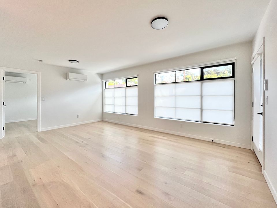 Newly completed ADU located just a block from the heart of Sunset Junction - and an easy stroll to the neighborhood's cafes, restaurants, shops, farmers market, and Erewhon market. The spacious light filled apartment features large industrial sash windows and European oak hardwood floors - offering a serene material palette with plentiful views of greenery. An off-street parking space is conveniently provided directly adjacent to the apartment. The kitchen includes full sized appliances and solid oak shelving. The large freestanding island includes space for seating and allows an easy flow for entertaining. The bathroom includes an oversized tub and easily accessed storage. The walk in closet is fitted with drawers and shelves and incudes an easily accessed full size washer/dryer. The bedroom includes both light filtering and blackout shades. Owner pays for water. Tenant pays for electric and waste. First month's rent and security deposit equal to one month's rent due at signing. No smoking.