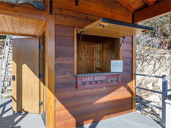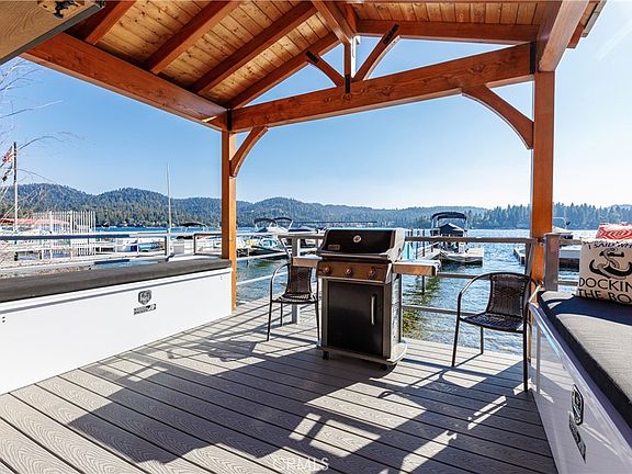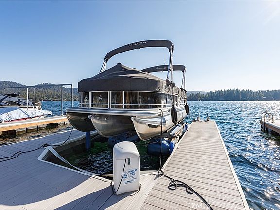The Complete Lake Arrowhead Dream Package! Experience mountain living at its best with this immaculate turnkey home—paired with a newer single-slip dock complete with a hydro-hoist, a beautiful dock house and a 2023 South Bay 22’ pontoon boat with trailer. Everything is in exceptional condition and ready for you to enjoy from day one. Step into a level-entry home with direct garage access and a bright, open living room featuring soaring ceilings, a stone fireplace, and a stunning wall of glass that opens to the deck—perfect for sunset dining and relaxing outdoors. The gourmet kitchen is designed for the home chef, offering a pantry, coffee nook, and effortless flow into the dining area, ideal for gatherings, holidays, and hosting. The main-level primary suite provides a true retreat with its own fireplace, jetted tub, walk-in shower, and generous closet. Downstairs, the lower level expands your living space with a cozy family/game room complete with fireplace and sauna, three spacious bedrooms, two bathrooms, and an oversized laundry room. Outside, thoughtful outdoor living spaces create multiple destinations: a serene relaxation deck, firepit lounge area, and a dedicated entertainers’ deck with endless potential. The property has been fully winterized and weatherized, including added concrete pedestals for the A/C and generator systems. All decking has been beautifully refurbished and re-stained with a premium 10-year finish for long-lasting durability and visual appeal. The 2024 dock house elevates lakeside living with a pass-through BBQ window, two custom cushion-top dock boxes, and stylish, functional design. The hydro-hoist allows effortless launching, and the 2023 South Bay 22’ pontoon boat (150HP Mercury with a 7-year warranty) rounds out this incredible offering. This is a truly rare opportunity to step into the complete Lake Arrowhead experience—home, dock, and boat—all meticulously prepared for your immediate enjoyment.