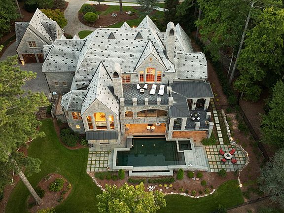 Stone fireplace keeping roomTwo-car detached garageTwo-car attached garageHome gymBreakfast roomCovered outdoor terracesFull irish pub