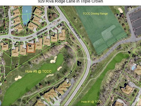 Totally Updated, Full Brick Ranch in Riva Ridge Overlooking the 9th Hole at Triple Crown. Low Maintenance Living at It's Finest. 4 BR / 3 Full Baths. Finished Walk-Out Lower Level Including Family Room, Large Bar/Kitchen Area, Media Room, & 2 Bedrooms. Spacious Covered Porch w/Walk-Outs from Master Suite, Kitchen & Great Room. Incredible Views and A Fantastic Location. Drive Your Golf Cart or Walk to the Club.