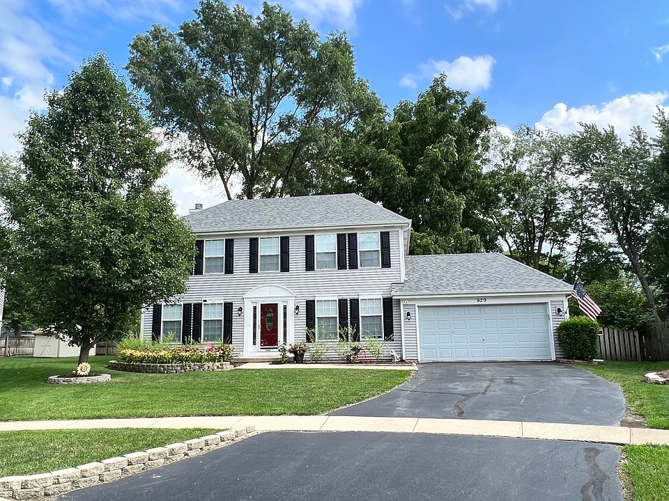 4BR/2.5BA home in Kensington Lakes backing to trees at the end of a cul-de-sac. Formal living and dining rooms are separate. Family room with fireplace is open to updated kitchen with island and table area plus all stainless steel appliances remain. New Granite Counters in Kitchen plus has a pantry closet. Full FINISHED basement. 4 nice sized upstairs bedrooms with 2 full baths. Private MBR bath. NEW roof, siding and gutters in 2022. NEW Furnace/CAC in past 3Yrs. Fenced backyard with Huge concrete patio and new shed for storage. 2 car attached garage. Exterior security cameras not included. Washer/Dryer stays and has hookups on 1st floor and bsmt. 1982 sq. ft on large culdesac lot. Hall Elementary, Jefferson JH and Aurora West HS.