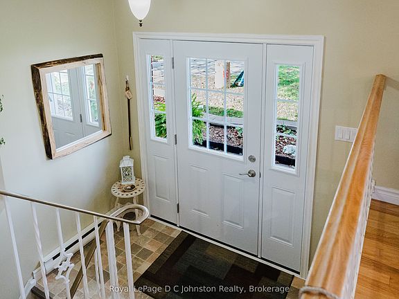 Welcome to this beautifully maintained all-brick raised bungalow, ideally situated in one of Port Elgins most desirable, family-oriented neighbourhoods. Set on a mature, tree-lined street close to schools and amenities, this home offers comfort, functionality, and pride of ownership throughout. The spacious main level features hardwood floors, a bright separate dining room, and a large, modern eat-in kitchen perfect for family gatherings. Two generous bedrooms and an updated main bath with a walk-in shower complete the upper level. The finished lower level offers a cozy family room with a gas fireplace, a third bedroom, a two-piece bath, and a versatile additional room ideal for an office, hobby, or games space or even a potential fourth bedroom. A large utility/laundry room provides ample storage. Notable updates include replacement windows (2010), a 200-amp electrical panel (2019), roof shingles 2010 and ductless air conditioning. Outside, enjoy excellent curb appeal, a fenced and beautifully landscaped backyard backing onto the popular rail trail, and a large garden shed for extra storage.