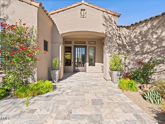 Beautifully updated 5-bedroom, 4-bathroom Monterey home in DC Ranch Country Club with stunning curb appeal! Completely remodeled inside and out, this home offers custom cabinetry, gorgeous Quartz countertops, custom tile work in all the bathrooms, designer lighting, updated wet bar, and recently renovated backyard. The chef's kitchen opens to the family room and is equipped with a large island and breakfast bar, brushed brass cabinetry hardware, Subzero & Monogram stainless steel appliances including dual ovens, and a wine fridge, and a spacious eating area. The kitchen overlooks the family room, which offers a modern linear gas fireplace with floor to ceiling stacked stone surround. The primary suite features a spa-like bathroom with modern marble tile, dual vanities, a separate bathtub and a steam shower. The tranquil, low maintenance backyard has a travertine tiled covered patio, separate sitting area surrounding a built-in gas firepit, a putting green, and a built-in BBQ area. This property backs to the community walking path and neighborhood pocket park with no neighbors directly behind. Conveniently located within a few minutes walk to Market Street, The Country Club at DC Ranch, Desert Camp Community Center and other great amenities.