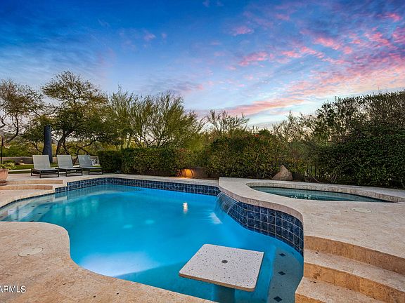 Extraordinary DC Ranch Contemporary showcasing a stunning new dream kitchen & wide planked oak floors on a secluded cul-de-sac boasting south facing views of the city lights, sunsets & surrounding mountains. The spacious elegant great room plan offers 6 ensuite bedrooms beautifully executed with custom finishes, powder room & pool bath. Incredible indoor/outdoor living spaces including 2 large covered shaded patio areas, pool, spa, waterfall, firepit complete with covered gas BBQ area. The charming front courtyard has a beautiful new gate plus a new grand wrought iron front door. The intelligent floor plan begins with an impressive foyer with soaring ceilings & an enclosed family room, formal dining room. butler's pantry w bev refrig, wet bar & ice maker. Primary suite has two-way fire fireplace, large closet with cedar storage & extra-large soaking tub. The serene backyard, adjacent to open space is quiet & private. Photography coming soon.