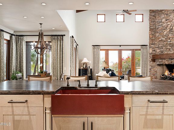 This gorgeous updated Modern/SW architecture is located in the DC Ranch Country Club on hole 6 and provides unrestricted mountain and city light views. Enjoy the beauty of the the surrounding from the elevated backyard with pool, spa, covered patio, built-in BBQ, TV and refrig. The second story viewing deck has views of multiple fairways and city light views. Features include, 4 generous size bedrooms, 4.5 baths, 4 car garage, storage, travertine/wood floors, custom cabinetry, granite slab countertops, a wet bar, game/bonus upstairs, separate office and stately main floor master suite. Centrally located and close to shopping and dining. A must see! More professional photos coming soon.