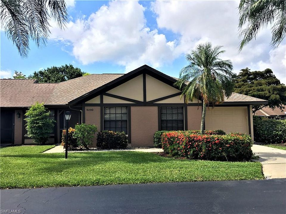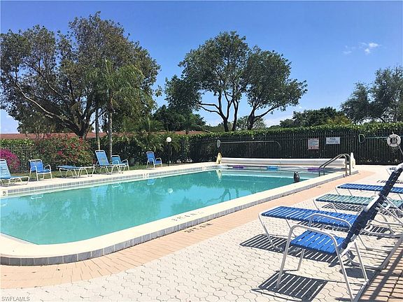V.2871 - Very charming neighborhood with beautiful mature shade trees and lush landscaping surround the highly desired Compass Pointe villas. This is an extremely well maintained, Low HOA fee community. A Fort Myers secret hideaway! This attached corner end villa with one car garage has 3 spacious bedrooms with 2 full bathrooms, corian counter tops and stone backsplash in the kitchen with an eat-in breakfast nook, vaulted ceilings, berber carpet and tile, and a walk in closet. You can enjoy the large covered tiled screened lanai that overlooks beautiful green space views and lots of privacy. Brand new water heater. This villa is seconds away to the lovely community swimming pool.