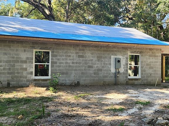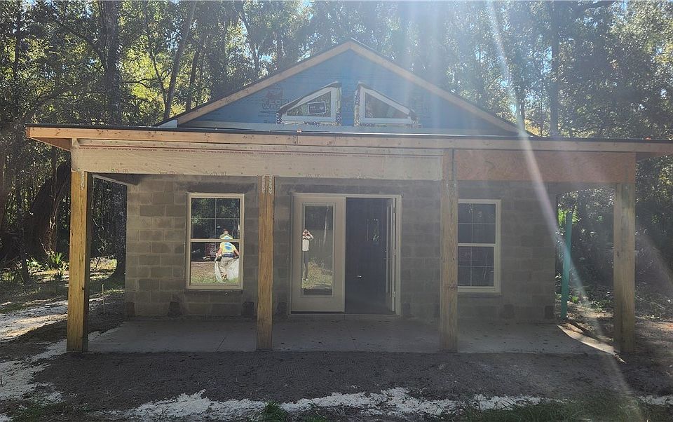 Promising opportunity to complete a home on 1.41 acres in Inverness, FL. This 864 sq. ft. block-constructed residence is approximately 75% finished, with roof shingles to be installed prior to closing. The planned 2-bedroom, 2-bath layout is fully framed, and the interior remains unfinished, providing a versatile space ready for customization. The property is cleared with a mix of mature trees, offering both openness and natural surroundings. Wildlife such as deer, turkey, and songbirds are commonly seen on-site and can be enjoyed from the front porch area. The location provides a quiet setting while remaining just minutes from downtown Inverness, offering convenient access to shopping, dining, and medical services. A great opportunity for completing a home in a peaceful, natural environment with room to personalize the final details.
