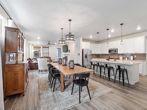 Enjoy easy, main-floor living in this beautifully customized, move in ready patio style home in Sterling Ranch - one of Douglas County's fastest growing communities! This open floorpan has 2 bedrooms, 2 bathrooms and features many upgrades and custom finishes including stainless steel GE appliances, Silestone countertops, designer light fixtures, chic black hardware on all doors, kitchen and bath fixtures, and luxury vinyl plank flooring throughout. The 9 foot ceilings, and 8 foot tall doors, add volume and sophistication to the flowing floor plan. A large owner's suite includes sunlight filled windows, a beautifully appointment bathroom and huge walk-in closet with direct access to the spacious laundry room. A sizable mudroom off of the garage ensures you have plenty of places to put all of your outdoor gear. Take advantage of a back porch perfect for grilling and small yard for your four legged family member. Community amenities include parks, clubhouse, 30 miles of walking trails, and 1,300 acres of open space with all HOA dues included in your property taxes. Live minutes from Chatfield State Park and enjoy easy access to E470, I-25 and I-70. This home is the perfect combination of style, convenience, low maintenance and main floor living!