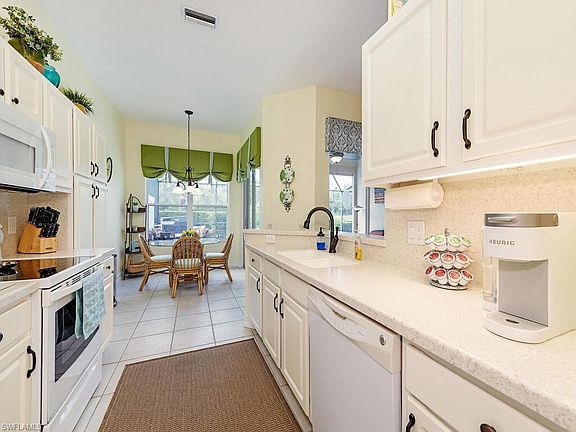 V12547 - At last! Beautiful attached villa with pool, 3 BR/2BA and 2 car garage has 2019 roof, driveway/entry pavers and is very well maintained & immaculate. It includes Plantation Shutters, gorgeous fully remodeled guest bath with tiled shower & glass enclosure, quartz counters, new vanity, more. Kitchen has new Corian counters & back splash for easy cleanups, new sink and faucets. Lanai has Storm Smart hurricane screen, awning w/new motor, new pool enclosure screens, pool heater & filter pump (2016). Spring Run is a bundled golf community with practice range, newly renovated 20,000 sq ft clubhouse, har tru tennis courts, bocce courts, community swimming pool/spa, firepit, fitness center, & complimentary enrichment programs. Private beach club may be available at additional cost. Centrally located to Naples, Ft. Myers/Sanibel. Min. from Coconut Pt Mall, beaches, RSW Int’l Airport, Miromar Outlets, FGCU, Hertz Arena.