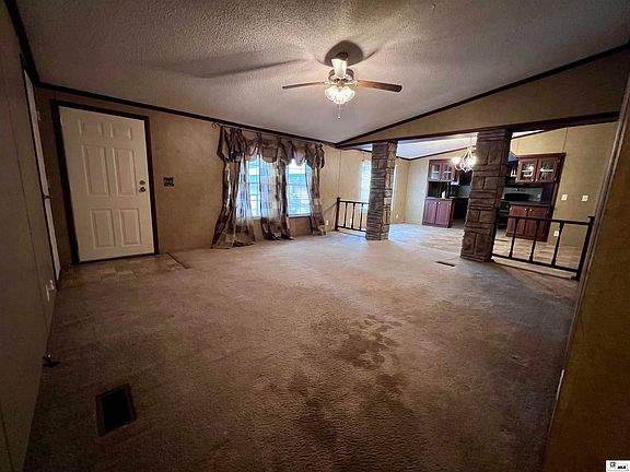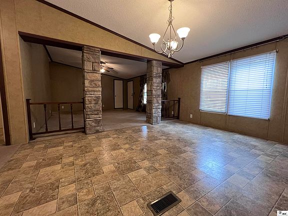 This 4 bedroom 3 bath, 2007 32x76 manufactured home boasts a spacious living room, a cozy den with a fireplace, and a chef's dream kitchen with a massive island, cabinets galore, and a convenient over-the-stove pot filler. Enjoy the luxury of a brand new LG Linear Compression refrigerator. Step outside to relax on your 12x20 covered front porch or entertain on the 12x20 screened porch. Plus, on this sprawling 3-acre property, you'll find an older 1/1 home with a metal roof, converted into a versatile workshop. Don't miss this opportunity for serene living with endless possibilities!