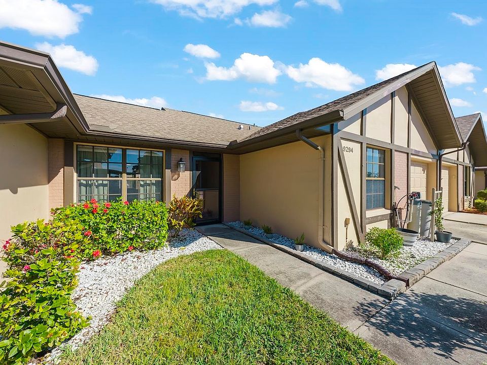 Welcome home! Check out this updated 2-bedroom, 2-bathroom villa nestled in the serene Compass Pointe neighborhood of Fort Myers. This tastefully renovated home features exquisite plank tile flooring throughout, complemented by a modern kitchen and updated bathrooms. The home layout features a desirable split floor plan, spacious interior, and tons of natural light, all creating an inviting ambiance. The spacious master bedroom boasts ample room for relaxation, complemented by a generous walk-in closet and a separate shower for added convenience. The guest room features tasteful accents including a painted accent wall and custom closet shelving, perfect for accommodating visitors or creating a cozy home office space. Recent upgrades include a brand-new A/C system installed in 2024 and Google smart fans, enhancing comfort and efficiency. Enjoy the convenience of low HOA fees, which cover clubhouse access, a community pool, and meticulously maintained lawns. Perfectly positioned overlooking a tranquil grassy expanse, this villa offers peaceful living with all the modern comforts. Don't miss the opportunity to make this your new home!