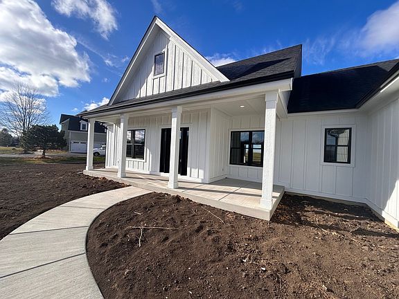 Welcome to this stunning brand-new 4-bedroom, 2.5-bath ranch-style home, offering modern comfort and timeless design. As you step inside, you'll be greeted by spacious open-concept living, highlighted by soaring vaulted ceilings that create an airy, expansive feel throughout. The thoughtfully designed floor plan features a bright and inviting great room perfect for entertaining, with a modern, sleek fireplace wall. The kitchen boasts quartz countertops, high-end cabinetry, and stainless steel appliances, with a generous island for added prep space. Whether you're hosting a dinner party or enjoying a casual meal, this kitchen offers both style and function. The kitchen also includes a large dining space overlooking the great room, making for seamless gatherings. The primary suite is a serene retreat with a fabulous on suite bathroom featuring dual vanities, and a large, separate shower for the ultimate relaxation experience. Three additional well-sized bedrooms offer ample closet space and easy access to the full bath. The exterior showcases a welcoming covered front and back porch, perfect for enjoying your morning coffee or relaxing at sunset. Set in a peaceful neighborhood, this home offers the perfect blend of modern amenities and ranch-style charm. With beautiful finishes and plenty of space to grow, this home is ready to welcome its new owners-schedule a tour today!