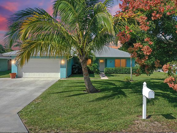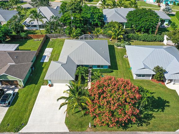 Super Clean, partially upgraded 3/3/2 home in deisrable Zeus Park neighborhood just 1-1/2 miles to beach. Vaulted ceilings, overhead lighting, lots of windows and wall to wall sliders opening to outside covered patio, expand the living space. The home boasts 2 Master Suites, vinyl flooring, lots of cabinets and prep space in white kitchen with Breakfast Bar, 2022 Bottom Freezer Refrigerator, 2024 Washer / Dryer, w/warranties, 2025 New Hurricane Impact Windows/Sliders, 2025 R38 Insulation added. Move-In ready!! Residents of this area can walk/bike to beach,restaurants, shops, parks and have many options for golf and boating. Residents have private boat ramp rights through the Hobe Sound Boat & Dock Assoc, public tennis, pickleball, racquetball, soccer & baseball fields. Florida living!