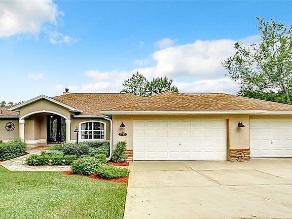 Would you like a home with a Golf Course view, but without the intrusion of cussing golfers and golf balls bouncing off your house? Then this is the PERFECT LOCATION for YOUR FLORIDA DREAM HOME! Peaceful elegance awaits you on this .38-acre Corner Lot that is Impeccably Manicured w/Captivating Perennial Landscaping: Palms, Pines, Oaks, Crepe Myrtles, Elm, Maple, and Magnolia trees. Flowering Bushes: Azaleas, Palmettos, Jasmine, Hawthorne, and Plumbago. 2024 30-Year Architectural Roof w/Transferrable Warranty, 2022 Heat Pump, Irrigation Well, House Generator w/Dedicated Electric Panel. This Pristine Block/Stucco HOME IS LIKE BRAND NEW! It has been lived in only part time by the original owners! There is: Stone-front Fireplace, Pergo XP Premium Laminate Floor, Custom Accent Paint Techniques throughout. French Doors w/ In-glass Micro Blinds. Granite Counters, Bone-white Appliances, Cabinets and Drawers. 2020 S/S Refrigerator. 3-Car Garage and 35ft Screened-in Lanai. So many details! Ask for your copy of the Features List and LINK to the VIDEO. THE ANNUAL POA FEE of $236 INCLUDES: