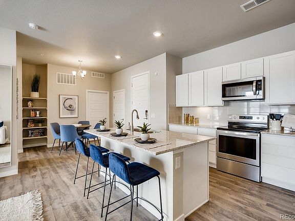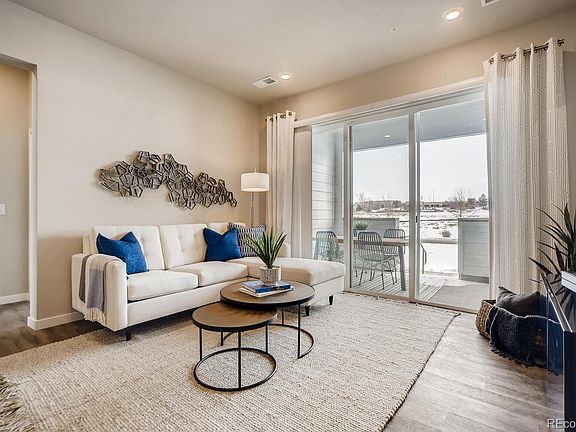 Unbeatable price on this beautiful WEST FACING brand new condo home! This home is just steps away from the Cherry Creek Trail System. Main level of the building - no stairs or elevator necessary! Private corner unit, no neighbors on primary bedroom walls. Newly constructed and ready for immediate move-ins - enjoy the summer season in your BRAND-NEW home with a spacious West facing patio. “Silverton White” - this stunning design package features modern white shaker style cabinetry and a sparkling grey quartz countertop in kitchen. Contemporary open floor plan. Primary suite features walk-in closet, large shower, and double sinks. Luxury vinyl plank flooring in kitchen, living, and dining areas. Bathrooms and laundry room feature elegant 12”x24” tile. Enjoy the community park, BBQ and fire pit area, and quick access to Westcreek Dog Park, Cherry Creek Trail, DTC, Main Street Parker, Castle Rock and Denver! Open community parking right out fronts of this unit. Building has an elevator if needed. Fantastic Parker location! Photos are not of this exact property. They are for representational purposes only. Please contact builder for specifics on this property. Don’t miss out on the new reduced pricing good through 7/31/2023. Prices and incentives are contingent upon buyer closing a loan with builders affiliated lender and are subject to change at any time.