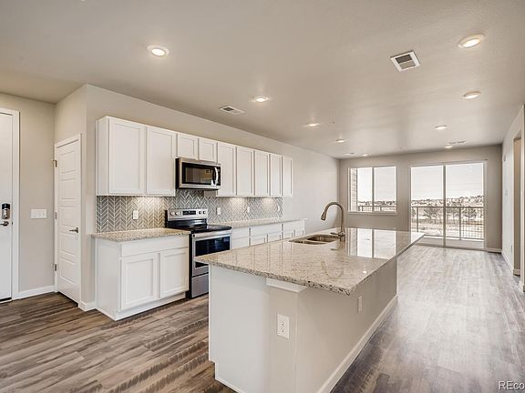 BRAND-NEW 3-bedroom condo home. Boasting a gracious center island and plenty of countertop and storage space, this home features an entertainer’s kitchen. West facing series of windows fills the home with warm natural light, overlooking the community park and Cherry Creek Trail System – don’t miss out on this rare corner unit! A lavish primary suite showcases a roomy walk-in closet and a deluxe private bath with dual sinks and a benched shower. This home features rich, warm espresso cabinetry throughout and granite countertop in the kitchen. Plenty of open community parking. Limited number of one-bay garages available for additional purchase price. Photos are not of this exact property. They are for representational purposes only. Please contact builder for specifics on this property. Don’t miss out on the new reduced pricing good through 1/31/2023. Prices and incentives are contingent upon buyer closing a loan with builders affiliated lender and are subject to change at any time.