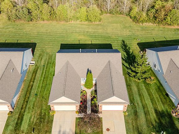 Welcome to this charming and well-maintained 2-bed, 2-bath end-unit ranch condo offering 1,214 sq. ft. of living space. The well-designed open floor plan provides a spacious living room with a cathedral ceiling that flows into a dining area and kitchen with plenty of cabinets, counter space and island seating. The living room is bright and comfortable with a portable gas fireplace and a door wall leading to the deck, perfect for enjoying the outdoors. The primary bedroom boasts a vaulted ceiling, spacious closet and private bath while the second bedroom, also featuring a vaulted ceiling and generous closet space can easily serve as a study or guest room. A second full bath with walk-in shower and first floor laundry complete the main level. The expansive basement with daylight window offers incredible potential for finishing, while also accommodating ample storage. The 2-car attached garage is an added bonus, offering easy, direct access into the condo. Upgrades include a newer sump pump, washer, dryer, refrigerator, dishwasher and a newer roof. Prime location in the complex! Original owner!
