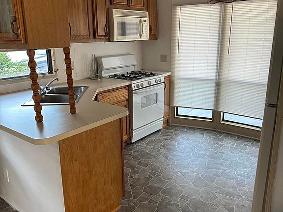 Active Under Contract - Accepting Back Up Offers. Dreaming of a Florida getaway? Whether you're searching for a seasonal escape from the snow, or a permanent place to call your own, this cozy mobile home in Camp-A-Wyle could be your personal haven! There's no lot rent here - you own the land. It's been beautifully maintained with a new AC unit in 2023, plus newer vinyl flooring in the kitchen, dining room, and bedroom. An addition to this singlewide unit adds flexible living space, which gives you all the room you need to relax or entertain as you desire. Vaulted ceilings add volume, creating a sense of spaciousness inside. The modest eat-in kitchen features a gas range, plus glass-fronted cabinets. A walk-in closet offers storage solutions in the bedroom, and there's a tub/shower combo in the bathroom. Two screened lanais/Florida rooms provide options when it comes to recreational space, or could even be converted into living areas or bedrooms. The laundry closet is conveniently situated indoors, and the carport can easily accommodate 2 vehicles. Camp-A-Wyle is a charming community with plenty of amenities, like an oversized community pool, putt-putt golf, shuffleboard, playgrounds, tennis and basketball courts, and more. The clubhouse also offers free internet, pool and ping-pong tables, darts, bingo games, and a party pavilion for outdoor events; they even have a laundry facility and showers in the complex. There are docks for fishing and boating in Tooke Lake. Your HOA fees include water and sewer, trash pickup, lawn maintenance, and free storage for your RV, boat, or trailer. Located just off US-19, you'll have convenient access to the wildlife of Homosassa, the famous sponge docks in Tarpon Springs, and the incredible beaches of Clearwater. Tampa is just about an hour to the south, and the magic of Orlando and its theme parks lies less than 2 hours to the east. Seize the opportunity - schedule a showing today and envision the possibilities of turning this home into your dream retreat!