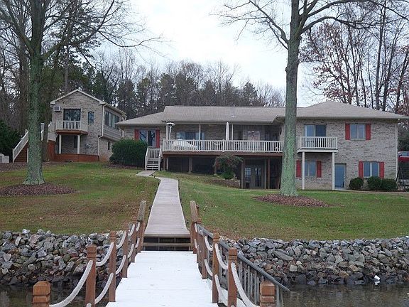 Gorgeous Waterfront brick ranch with basement and separate apartment, priced BELOW tax value. 2-car detached garage has apartment (not included in SF) above with bedroom, living, kitchen, bath,and separate driveway with motorhome pad and dump station, and is currently rented. Tenant is able to continue renting or leave. Attached 2-car garage has half bath. Dock has 2 lifts, 12K & 5K lbs. & 2 jetski lifts. Updated appliances and granite counters in Kitchen, New water heater and water softener, updated septic, updated deck and garage doors. Central Vac. Lower level closet plumbed for bath, pet doors, and so much more.