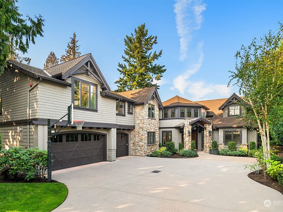 Stunning Sun Valley style at this light & airy Yarrow Point residence on a private half-acre lot. You are welcomed by a grand 2-story entry w/spectacular chandelier & winding staircase. The great room boasts beamed ceilings, stone fireplace & French doors leading to the outdoor living room w/fireplace, built-in BBQ & dining area; perfect for gathering. The chef’s kitchen offers eating area w/window seat & butler’s pantry. Main level office w/built-ins for those working from home. The 5,390 sf floor plan includes guest suite on main & 4 bedrooms on the upper level w/luxe primary wing offering just the right amount of privacy. Also on this level: bonus room + media room. The complete West Bellevue package just minutes to downtown amenities.