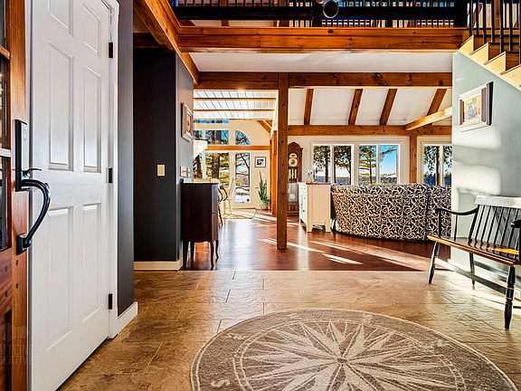 Come enjoy Maine, the way life CAN be! This spectacular post and beam home offers everything you want in waterfront living. Beautiful westerly exposure with deep water frontage on the New Meadows River. 500+ feet of waterfront with an oversized deepwater dock. The main living area showcases a dramatic floor to ceiling stone fireplace. A wall of glass draws your eye outside where eagles and osprey soar and fish in the river. A seal may peek out of the water to find that sunny rock on one of the islands in your view. The chef's kitchen is open to the living and dining areas. Well designed for entertaining and enjoyment, the living space easily flows from in to outside with the spacious deck and patio. The main floor finishes with a sunroom, bedroom suite and all amenities needed for one floor living. Upstairs you will find a second bedroom with bath, a large loft overlooking the living area, and a spacious primary suite. The primary suite has a walk-in closet, large bathroom with double headed shower, and a deck overlooking the river. The basement level has been completely finished for games, movies and entertaining. A full wet bar and wine vault for the grown-ups, and room for ping pong, pool and lots of other fun family activities. You'll need some grown up toys and a place to store them. We've got that! A large barn with a loft can hold boats, atv's and other treasures. This home is also part of the Sabino community with walking access to Houghton Pond and friendly gatherings should you want to join. Complete privacy with a sense of neighborhood set in the heart of all the MidCoast has to offer. Just a few minutes by boat to open ocean providing access to islands and peninsulas you can explore for days. From the dramatic approach to the property, through the front door and out to the waterfront, you'll be able to picture your life here in Maine, the way life should be!