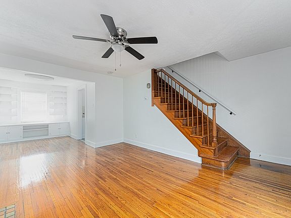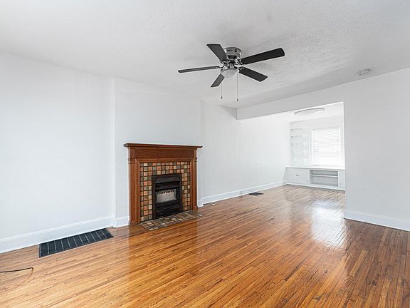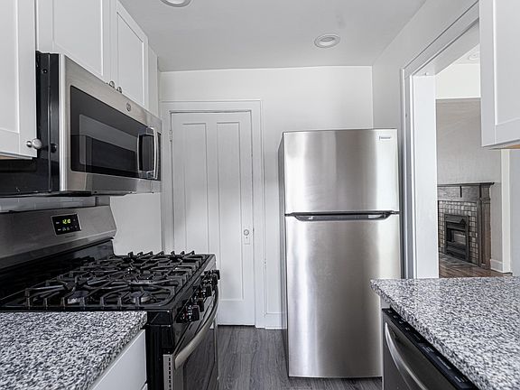 The kitchen is updated with granite countertops and stainless steel appliances. Enjoy original hardwood floors and other period details.