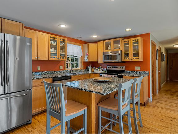 Open floor plan kitchen/living room and 3 modestly sized bedrooms all on one level. A 3 or 4 bedroom set up with a 4 bedroom septic installed in 2019. Beautiful hardwood floors shine throughout. Other high-end finishes include granite island and matching granite countertops, architectural shingle roof, a wood stove fireplace in the open living room/kitchen area is very cost efficient and charming.