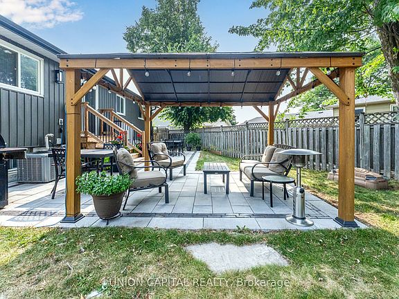 LOOK NO FURTHER STOUFFVILLE! Rarely Offered Bungalow On Booth Drive, Offering No Sidewalk On A Huge Lot, Beautiful Functional Layout, Separate Entrance To Basement & Much More. This Is One You Have To Come See In Person! From The Road You'll Immediately Notice The Thousands Spent In Upgrades, Including New Vinyl Siding, Amour Stone Retaining Wall/Landscaping & NEW Roof /Eavestroughs / Downspouts(2025). Not To Mention The Curb Appeal, Parking For 6 (4 + 2 Garage) &Beautiful and Easy To Maintain Gardens. Inside You'll Notice This Incredibly Maintained & Clean Home With Bright Sightlines. The Kitchen Offers Solid Hardwood Cabinetry, Plenty Of Storage, Black Granite Counters, Charcoal Subway Tile Backsplash, Peninsula Island & Stainless Steal Appliances (Fridge 2024). The Open Concept Feel Between The Kitchen, Dining & Living Room Is Perfect For Family Gatherings. Not To Mention The Walkout From The Kitchen To The Gorgeous Backyard Patio, Gazebo & BBQ Area. All Three Bedrooms Are Generous In Size, With The Primary Bedroom Also Having A Separate Entrance To The Main Level 4-Piece Bathroom. Downstairs You'll Find The Finished Basement With Two Separate Entries, Clean & Warm Carpet, Fireplace, Office Nook & 3-Piece Bath. Easily Convert The Basement To An In-Law Suite Or For Basement INCOME! The Backyard Offers An Abundance Of Privacy From Mature Trees, Gazebo (INCLUDED) & Firepit! Be Sure To Checkout The Listing Website For VIDEO/DRONE Footage! **Pre-Home Inspection Also Included Upon Request**