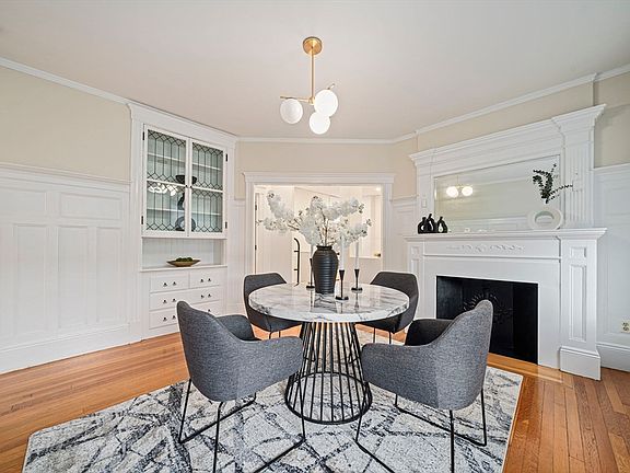 Dramatic fireplaceFormal dining roomGenerous bedroomsPrivate balconyRenovated bathsLeaded glass builtinsPlate rail wainscoting