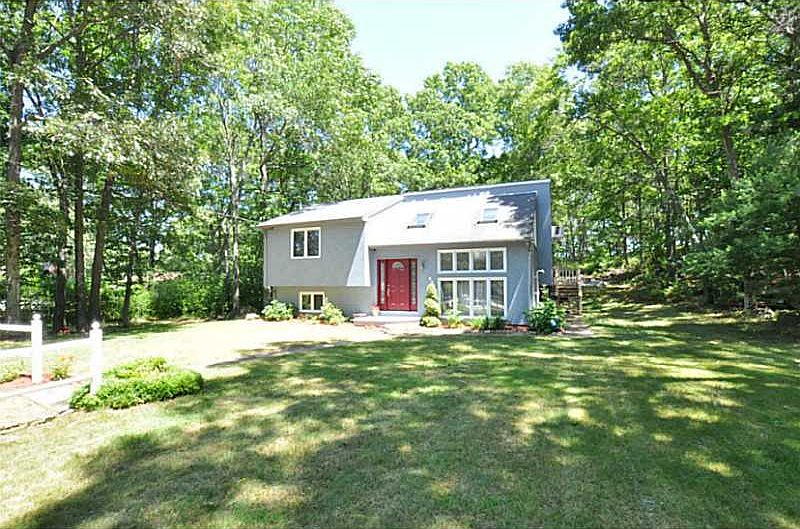Contemporary Split Level w/ Open Floor Plan. Kitchen & Both Baths Recently Updated, New Flooring & Paint Throughout. Cathedral Ceiling & Skylights w/ French Doors leading to Private Oversized Deck. New Pellet Stove supplements heating costs.