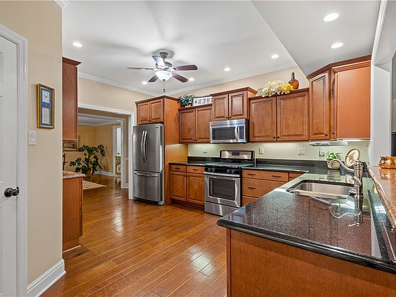 Desirable ranch with flexible floor plan in the best location just minutes from the airport, Settlers Cabin Park, Settlers RIdge, shopping & city, this meticulous brick ranch is a must-see. Boasting 4 bedrooms, a 1st-floor apartment or office, an outstanding updated kitchen with granite counter tops, stainless steel appliances, walk-in pantry, coffee bar, and hardwood floors, opens to a spacious welcoming family room with cathedral ceiling, stone fireplace & wall of windows overlooking a beautiful backyard oasis with a pond & waterfall, lush garden beds & deck, perfect for hosting gatherings or simply enjoying some peaceful relaxation. You'll also love the dining room accentuated by beautiful builtins and hardwood floors. All baths have recently been updated. The lower level features a game room, bright sunny laundry/craft room, a full bath, workroom & organized storage. There's an additional adjacent buildable lot available for sale offering public utilities!