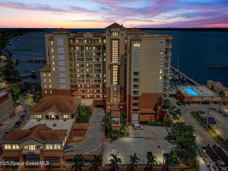 Enjoy panoramic views of the Indian River, abundant wildlife, sunsets and rocket launches — Walk to dinner, a show then dancing in Cocoa Village— Stroll back to your dream condo lifestyle! This stunningly updated 4BR/3BA riverfront suite boasts a 75 ft wrap-around patio, gourmet kitchen w stainless appliances, tile and LVP floors, granite and quartz counters, 3 walk-in closets, and spa-style primary ensuite with fireplace. Electric storm shutters, whole-house water filtration, 2 garage spots. Pool, gym, community room. SIRS engineering study complete, reserves fully funded. HOA includes everything except electricity. Enjoy year round, or lock it and leave it, with no concerns. A rare blend of upgrades, outdoor living, and value!