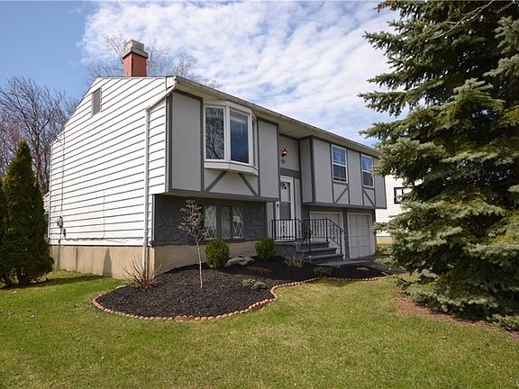 Well maintained two-story home on quiet neighborhood street with 2 car attached garage and large fully fenced yard. Modern shiplap entry leads to open living rm with natural red brick wood burning fireplace. Extra large kitchen, now open to dining area, comes fully applianced with loads of cabinet and counter space. 3 spacious bedrooms and an updated full bath complete this level. The lower level has an additional full bath, family room, and bonus area leading out to Florida room that overlooks the yard. Extra deep garage has great storage. A few short blocks from grocery, gas, retail and many more amenities on Transit Rd. House shows A+!