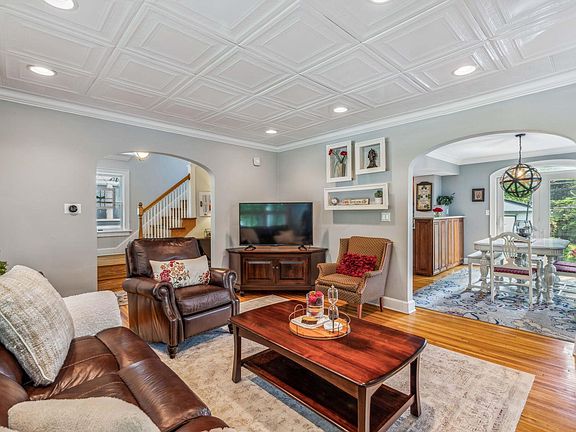 Escape to this enchanting 3 BR,2.5 BA home nestled in the heart of charming Clintoville.Step onto the expansive covered front porch and be greeted by this historic gem.The inviting great room boasts abundant windows and a cozy fireplace.Flow seamlessly from the great room to the dining room and into the updated kitchen, featuring 42-inch cabinets,solid surface countertops,and stainless steel appliances.Upstairs,the spacious primary bedroom awaits,complete with a renovated full bath featuring heated floors and a luxurious walk-in shower.Two additional sizable bedrooms and another full bath complete the top floor. The finished lower level is perfect for gatherings or entertaining.Outside,discover the vast private backyard with a patio and a 2-car garage.Enjoy easy access to nearby parks!