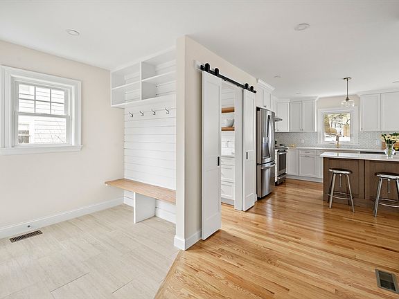 Beautifully reimagined Dutch Colonial Revival merges historic charm w/modern functionality. A complete 2025 renovation delivers an open-concept main level where an elegant kitchen, w/sleek quartz countertops and walk-in pantry, flows into refined living and dining spaces. Through sliding doors, the living areas showcase and connect to a lovely backyard. A thoughtfully designed mudroom offers practical storage and smooth transitions. The primary bedroom boasts dual closets and an ensuite bathroom with glass shower and add'l storage. Two more bedrooms share a beautifully tiled full bathroom on the 2nd floor. A finished lower level adds versatile living space, including room for a home office. This all electric home features an efficient 2-zone heat pump system. Located in the coveted Winn Brook area, this home offers convenient proximity to Belmont Center, public transport & schools. Fresh landscaping enhances curb appeal, while the walk-up 3rd floor presents expansion possibilities