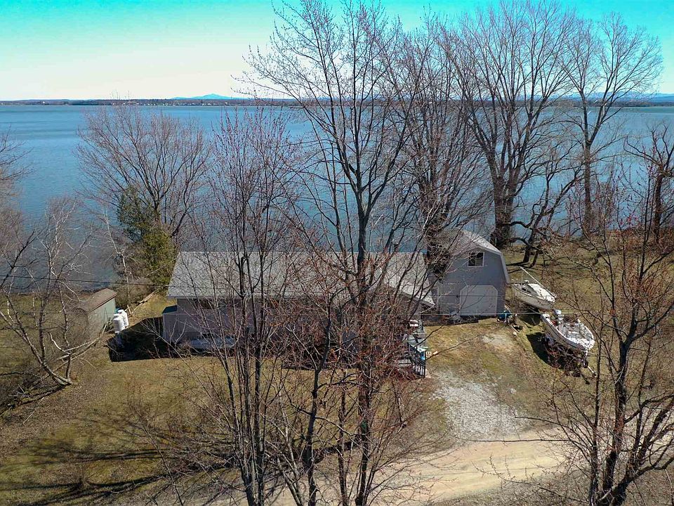 This year round home is sited directly on the shores of Lake Champlain on a double lot with 200 feet of owned frontage. One level living with lots of glass! Protected canal access on the west, super for a canoe or kayak! Nature all around! Sweeping easterly views. Sit on the deck and watch the sunrise over the Green Mountains! Enjoy the nights watching the moon rise which is a spectacular site! There is a detached two story garage for all of your summer time toys! This is the Inland Sea which is just perfect for water fun of all kinds. Come and Visit, and sit for a moment and enjoy the peace and quiet! Escape to the Lake! Plenty of level lawn space for a garden or play area.