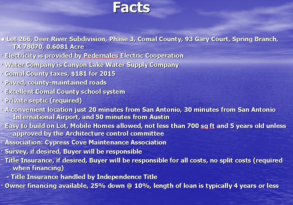This is your opportunity to own a piece of the Texas Hill Country. Over 1/2 an acre in a quiet cul-de-sac in Deer River Subdivision in Spring Branch.