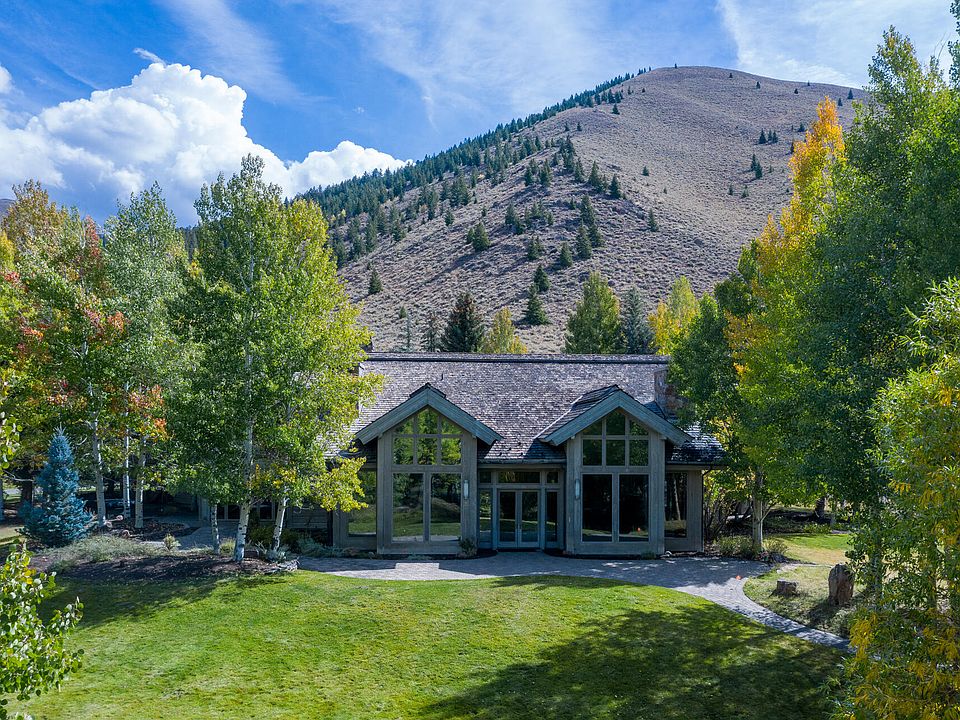 Gimlet estate on 5.9 wooded acres with a pond, mountain views, and unmatched charm. Grand great room with two fireplaces, library, ample outdoor entertaining space, and guest wing over a triple garage. A rare Wood River Valley treasure-private, with amazing bones and room to make it your one-of-a-kind estate minutes from Ketchum amenities and world class skiing. Incredible value for ideal home.