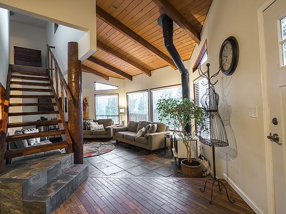 This home in the trees is situated high above the street with territorial and forest views. Located near Lake Whatcom in Sudden Valley, this home with its open concept, has a cozy wood stove for chilly evenings, and a great deck for outdoor living. The master bedroom is on the main floor with two bedrooms upstairs via the open staircase. Great nearby recreational activities abound with a golf course, parks, trails, marina, lake, fitness center and community pool. This price will move you.