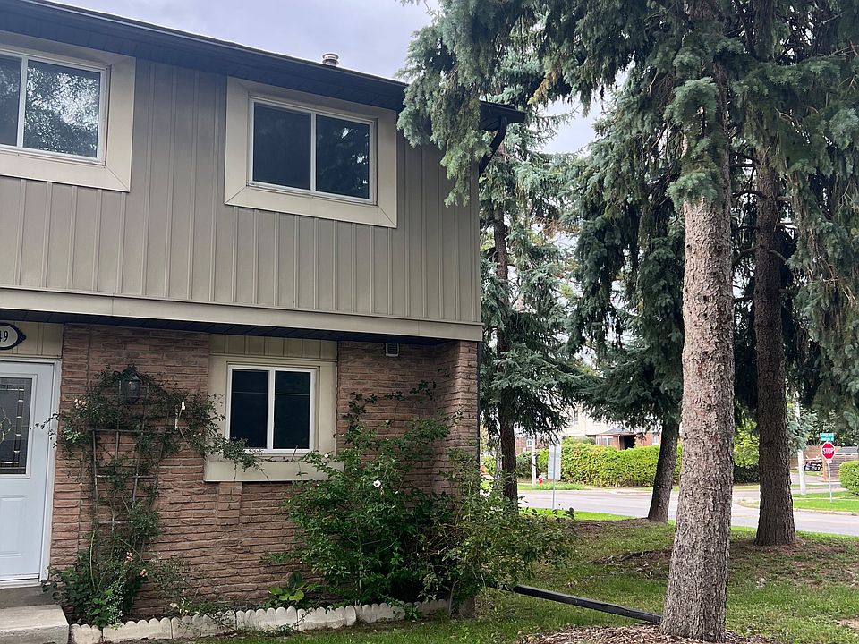 Beautifully upgraded end-unit townhouse in a highly walkable location, close to schools, shopping, transit, and recreation centers. Tucked away at the end of a quiet street within the complex, this home offers excellent privacy, surrounded by mature trees and featuring a fully fenced backyard. Inside, you will find a brand-new kitchen with stainless steel appliances (including a never-used dishwasher), ceramic backsplash, and pantry. The spacious living and dining area has a walk-out to the backyard, perfect for entertaining. Upstairs features four generously sized bedrooms, all with brand new laminate flooring. The entire home has been freshly painted, and the renovated main bathroom adds a modern touch. A convenient main-level 2-piece powder room has also been updated. The finished basement offers even more living space with a recreation room, a renovated 3-piece bathroom, laundry room, and plenty of storage. Comfort is assured with a new furnace, new central air conditioning, and a Google thermostat. Extras include: Bell Fibe Internet + Bell TV package (with 2 TV boxes) included in the rent. Two dedicated parking spaces. Brand new laminate flooring throughout (main, second, and basement levels). This home has been lovingly renovated and is move-in ready. Ideal for tenants who will appreciate the care and quality invested.