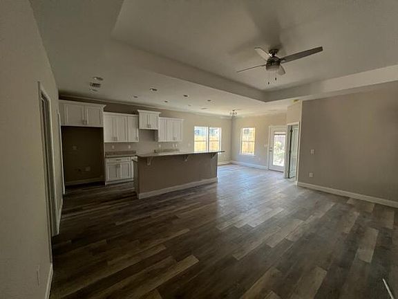 New Construction - features architecturally distinct gables with the classic front porch. The interior has beautiful finishing touches including LVP flooring throughout, nine foot ceilings with a tray in the master and living area. Open kitchen with custom white shaker style cabinets with easy close doors, granite counter-tops, stainless steel LG appliances including refrigerator. The dining room leads to the covered back porch grilling area. Both bathrooms have granite countertops and master has large walk in closet. This is a Good Sense energy efficient home with Low E windows and Rheem HVAC. Home includes privacy fence with gates on both sides.