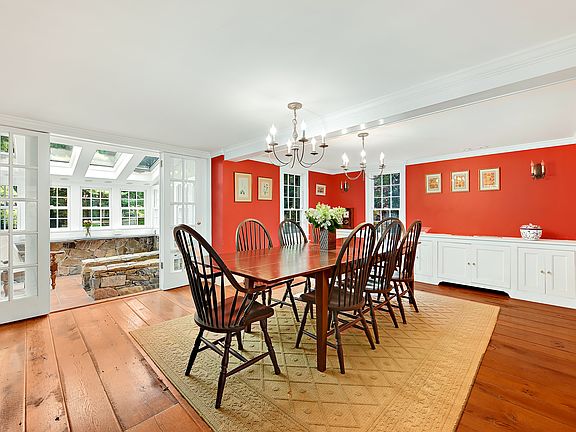 The Samuel Seely Homestead has been lovingly restored and expanded while maintaining the historic integrity of the home's original antique post and beam character. The warmth of this period home is reflected in the gleaming wideboard floors,2 fireplaces, beehive oven, antique paneling and 2 genuine Franklin stoves. Stone walls and patios gracefully enhance the landscape. Mature specimen trees, rolling lawns and perennial gardens further highlight this picturesque setting. An Iris encircled pond provides a visual focal point for the main house as well as the 2 bedroom guest house (910 square feet) and separate two story Barn. Other outbuildings include an antique shed and heated two car garage. Electrical in place for generator. An idyllic setting-the very essence of the historic rural flavor of Pound Ridge.