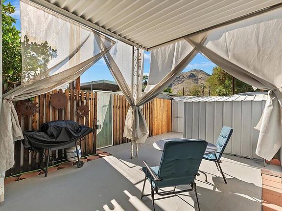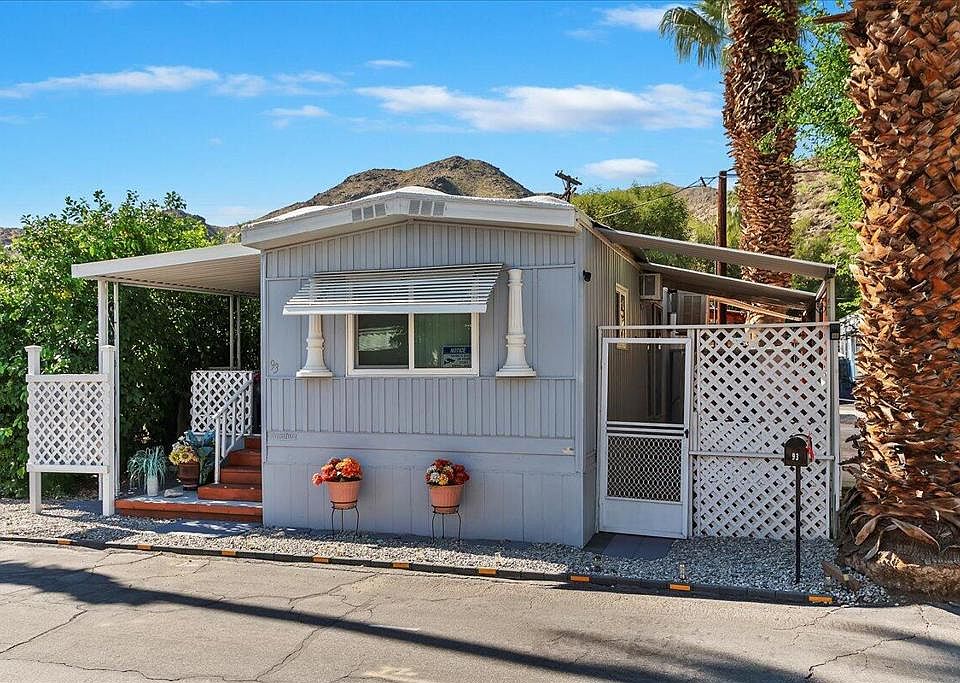 LOCATION, LOCATION, LOCATION!! This mobile home is nestled under the Santa Rosa Mountains in south Palm Springs; Horizon Village is an eclectic all-age community situated just below the iconic Bob Hope Estate and Araby Hiking trail. Enjoy the well-maintained park, with great neighbors, quiet, affordable and secure location. Pet friendly/enclosed dog park and virtually wind free. Palm Springs International Airport is a 5-minute drive. There is a community swimming pool & Spa, a community room, fitness center, and shuffleboard. This mobile is ready for a new owner that wants to enjoy the relaxed lifestyle of Palm Springs. It can be a permanent home or a vacation home. It must be owner occupied, all potential buyers must be approved by management to purchase, the monthly land rent will be $925 buyer is responsible for electricity, gas, water and sewer. Buyers must have two times the monthly rent in verifiable income to purchase.This two-bedroom, one bath mobile home has been immaculately maintained and renovated. It has private outdoor space for entertaining or having your morning coffee or evening cocktail. two storage sheds, one with washer & dryer and the other is insulated. There are two lemon trees, one pink grapefruit and one orange tree. The flooring has been updated to laminate wood flooring. the kitchen has a gas cooktop, a breakfast bar and plenty of cabinets. The windows have been replaced with double-pane vinyl. The bathroom has a tub with a shower. Call for an appointment to see this move-in ready home, you won't be disappointed!