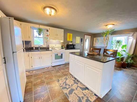VETERAN-OWNED! Country home located on 2 acres just a few minutes from Spring Mill State Park! This well maintained home features an open flow living space, gorgeous kitchen with white wood cabinetry, granite countertops, and includes the kitchen appliances. The bedrooms offer a split floor plan, and each room has a large closet. Other amazing features of this property include vinyl windows, covered front porch, rear patio space, a massive pole barn with ten foot doors, an office space, and concrete floors. You'll also find a cozy little cottage that could be used for a home office, art room, guest space, and was once a tiny bakery! If you are looking for privacy with convenience, this home has it!