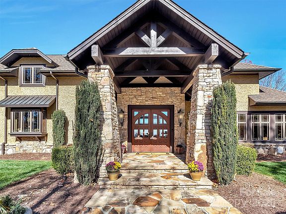 Mountain Modern Luxury with Sweeping Year-Round Views. Experience refined mountain living in this stunning open-plan home designed to accommodate your ideal architectural style — Craftsman, Contemporary, or Mountain Modern. Set on approximately 3.7 acres atop a private flat ridge, this 5,484 sqft residence blends breathtaking long-range vistas with exceptional craftsmanship and comfort. The main level showcases a spacious Primary Suite with a private sitting area, large walk-in closet, and a spa-inspired bath featuring dual lavatories, separate water closets, a soaking tub with panoramic views, and an open shower with body sprays, ceiling-mounted rain head, and multiple showerheads. Chef's Kitchen with Sub-Zero and Wolf appliances, extensive "leather" granite throughout, pot filler above the stove, solid cherry cabinetry and a movable center island. Enjoy radiant-heated Italian porcelain tile floor on the Main Level, solid Brazilian cherry wood floors on the Upper Level and staircases, vaulted wood ceilings, and Anderson 400 Series windows framing year-round mountain scenery. Upper Level boasts three ensuite bedrooms and a versatile flex space (currently an office/exercise area) offering privacy and flexibility. Outdoor living is elevated with a large, flat, landscaped yard, multiple gathering areas, fire pit and a grand pavilion — ideal for entertaining, weddings, or simply soaking in the views. Owner financing available. July 22, 2025 Appraisal - $3,300,000! Pavilion can easily be converted into a 3 car Garage. Prime Location: Only 10 minutes to downtown Waynesville, 5 minutes to the historic Waynesville Inn & Golf Club, 30 minutes to downtown Asheville and 35 minutes to the Asheville Regional Airport.