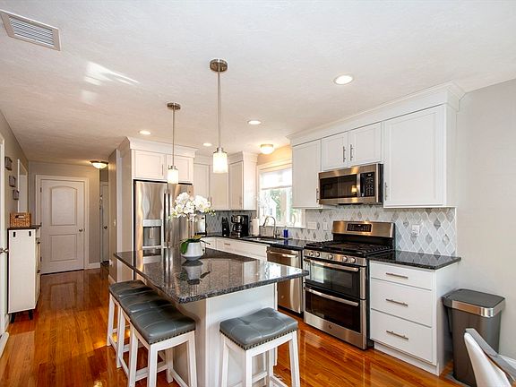 Welcome to this immaculate, like-new Colonial with an attached two-car garage. Featuring timeless design and premium builder upgrades throughout, this home perfectly blends classic charm with modern convenience. The chef’s kitchen boasts SS appliances, stone countertops, and an oversized island that flows seamlessly into the expansive dining area and family room with fireplace—ideal for entertaining or everyday living. The main level is highlighted by gleaming hardwood floors and an abundance of natural light, creating a warm and inviting atmosphere. Upstairs includes a primary suite with ensuite bath and walk-in closet, two additional bedrooms, a full bath, and convenient second-floor laundry. The finished walkout basement provides versatile space ideal for a home office, gym, or media room—tailored for today’s flexible living needs. Situated near the end of a cul-de-sac, this exceptional home offers peace and privacy while still close to local amenities, schools, and commuter routes.