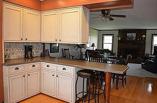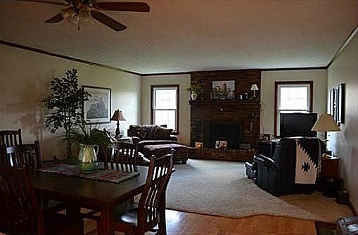 n Beautiful ranch style home with 3 bedrooms, 2 full baths and a finished basement in a desirable subdivision. This home has it all starting with the quaint front porch to sit on and enjoy. It offers a combined formal living room & dining room with large picture window and built-in book shelves. The combined family room and breakfast room features a wood burning fireplace and is open to the kitchen. You'll love this updated and efficient kitchen with wood floor - The breakfast room area also has wood floor along with a Dutch door that steps into an enclosed 3 season room to enjoy. From here you step out onto the back deck. This house flows nicely! The updates in the house include: kitchen cabinets, counter top, backsplash & sink in 2011. Windows throughout the house replaced in 2012 (except for 2). Furnace is 12 years old.
